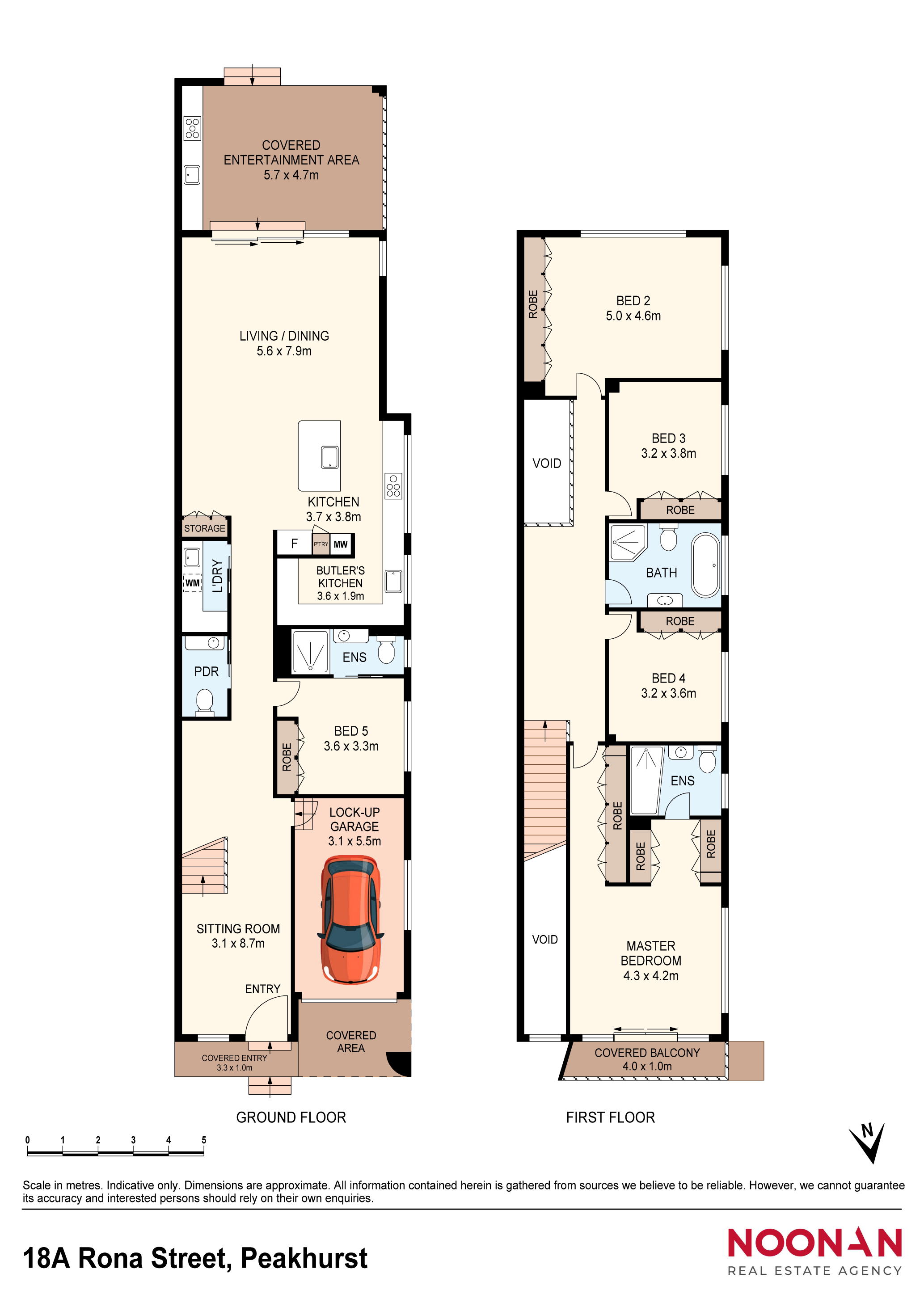 – Five generous bedrooms with built-in wardrobes, including flexible study/guest room