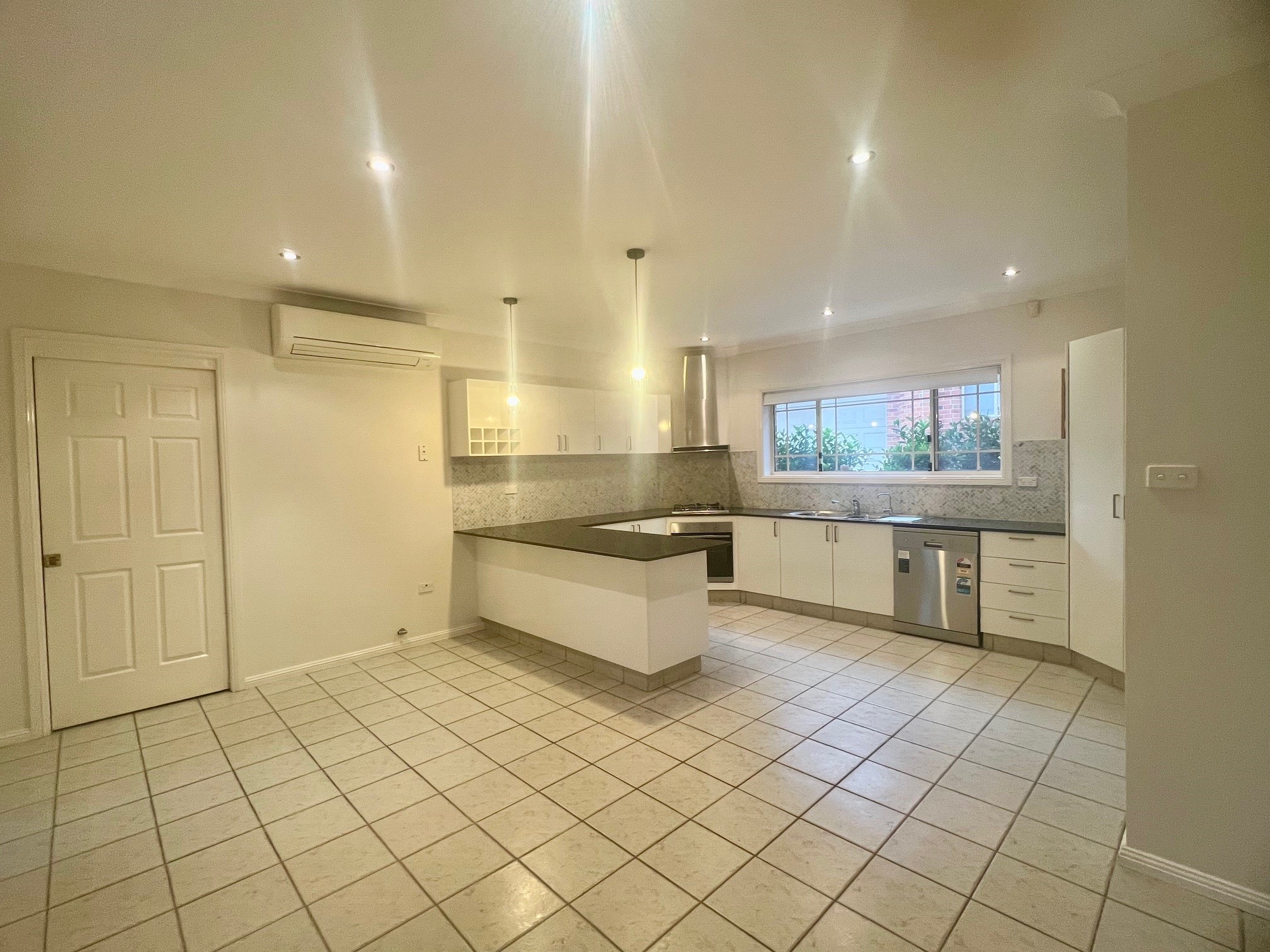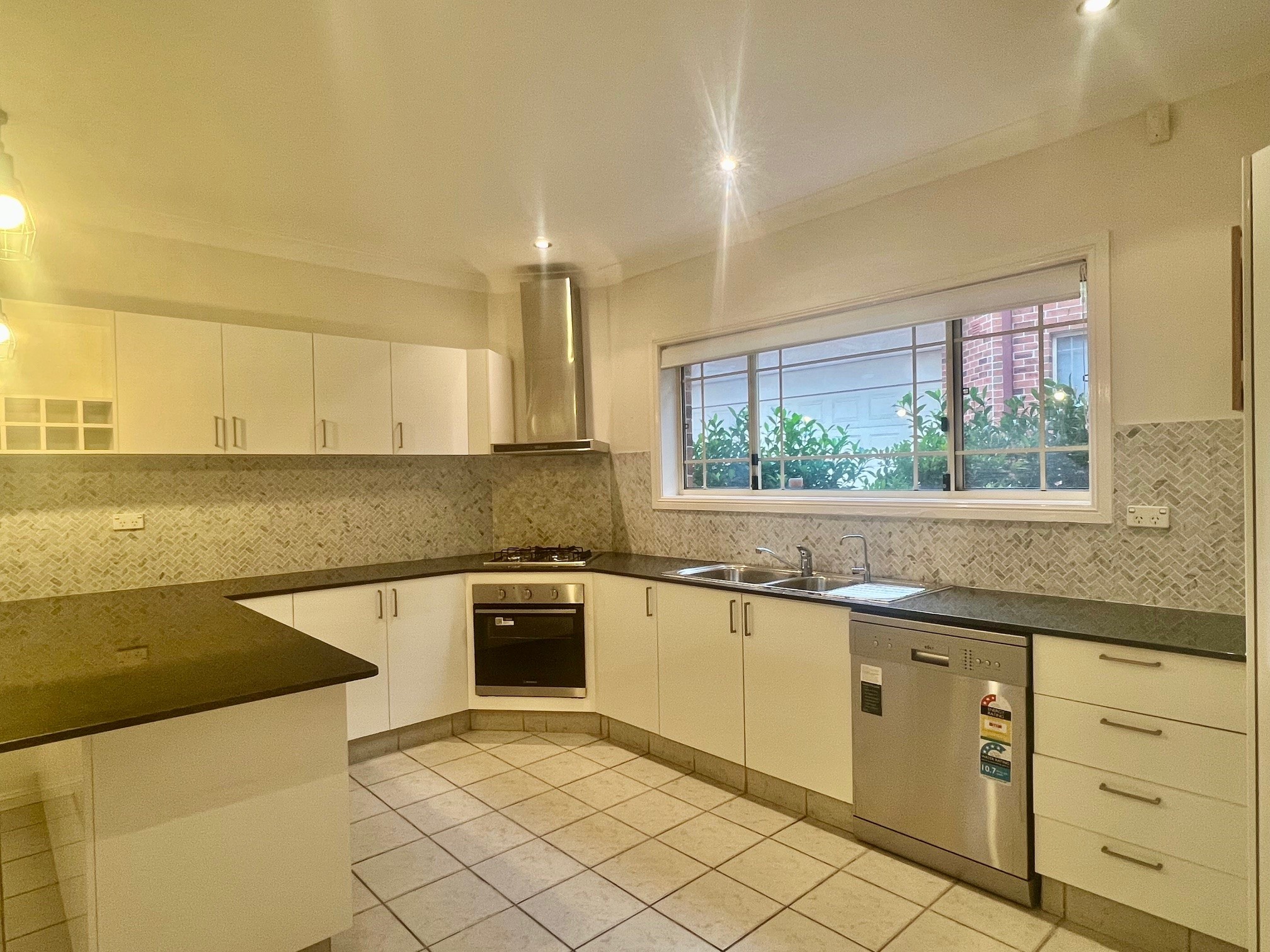 – Spacious modern kitchen with stainless appliances and dishwasher