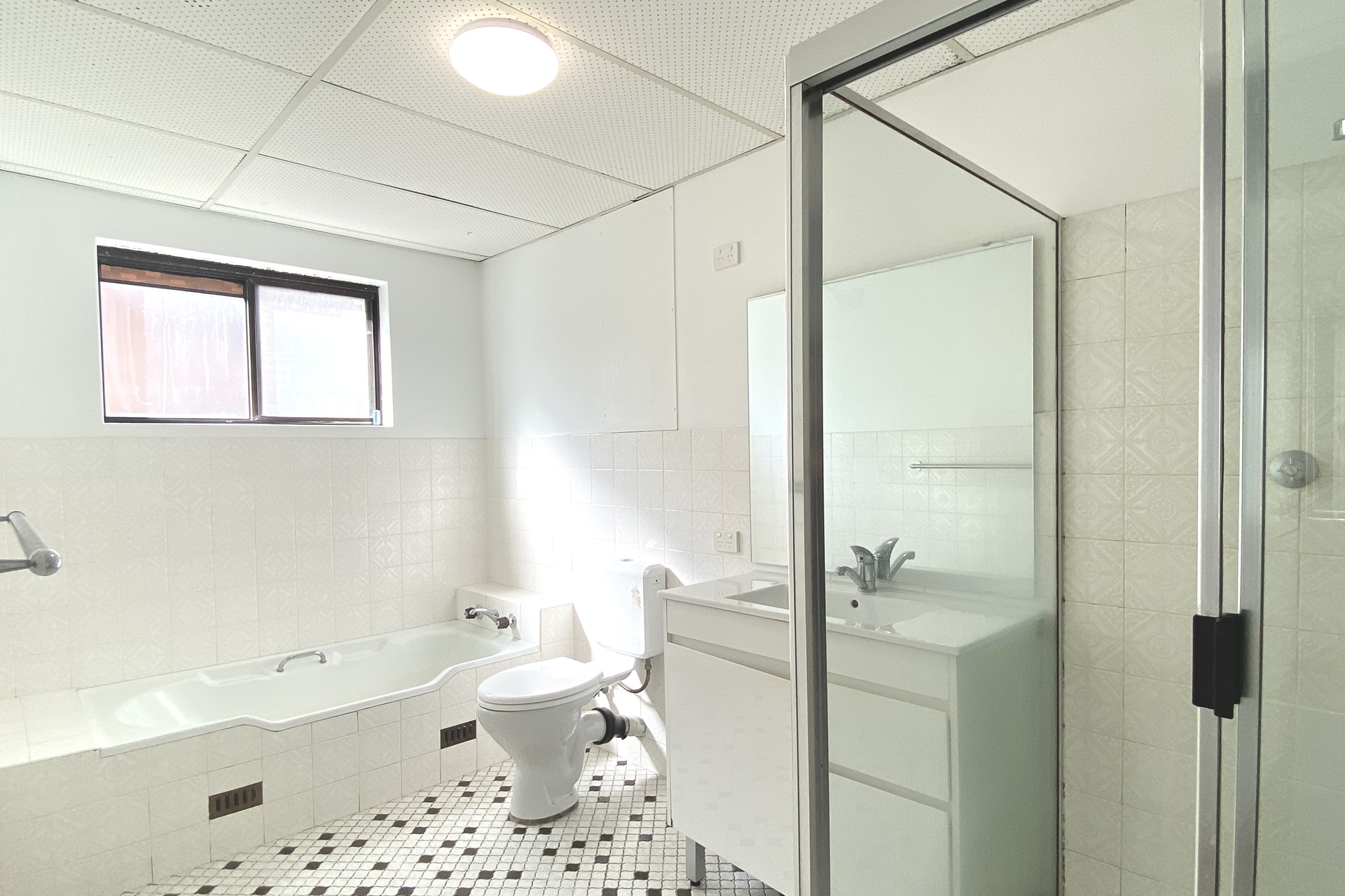 – Spacious bathroom with separate bath and shower