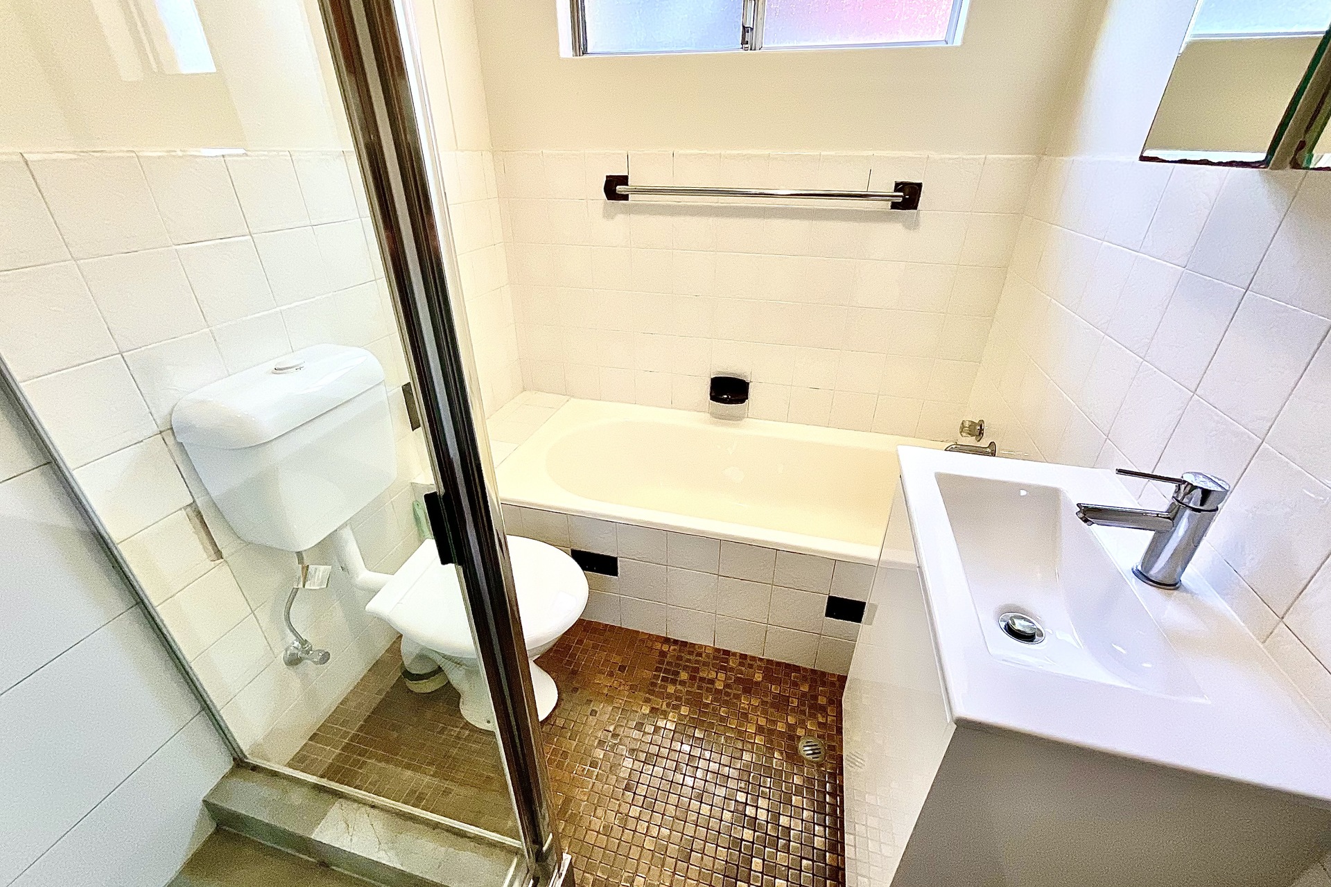 – Tidy bathroom with a separate bathtub and shower