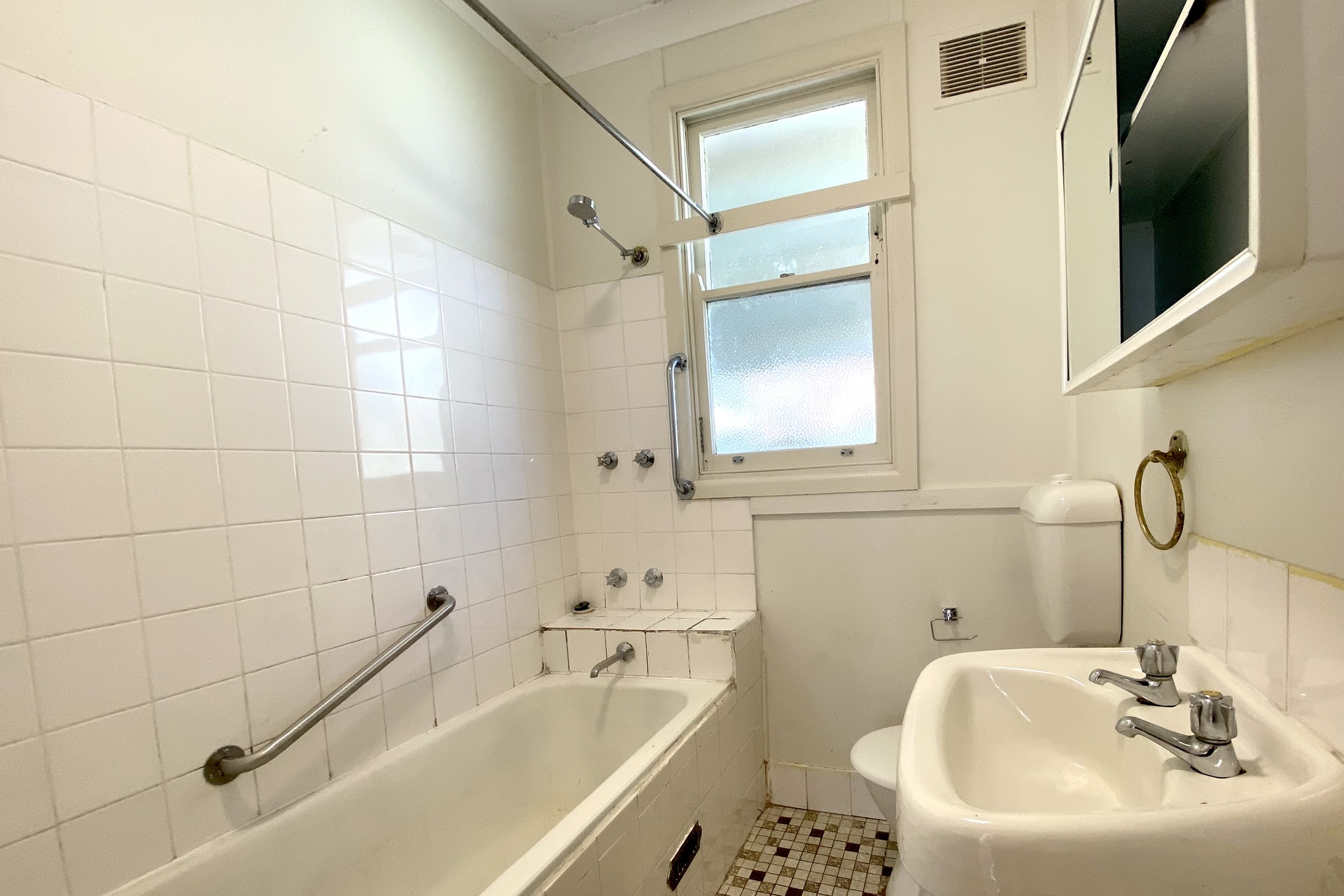 – Bathroom with shower over bathtub
