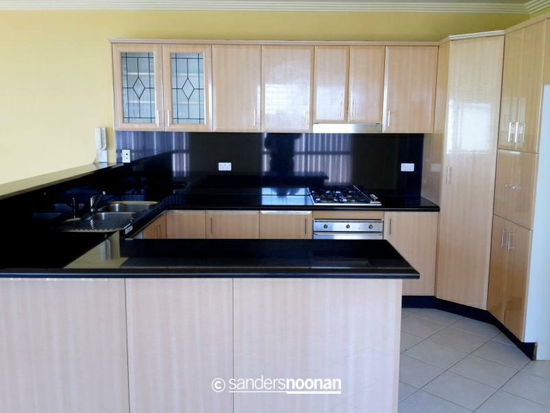 – Modern kitchen with stone bench tops and quality gas cooking appliances