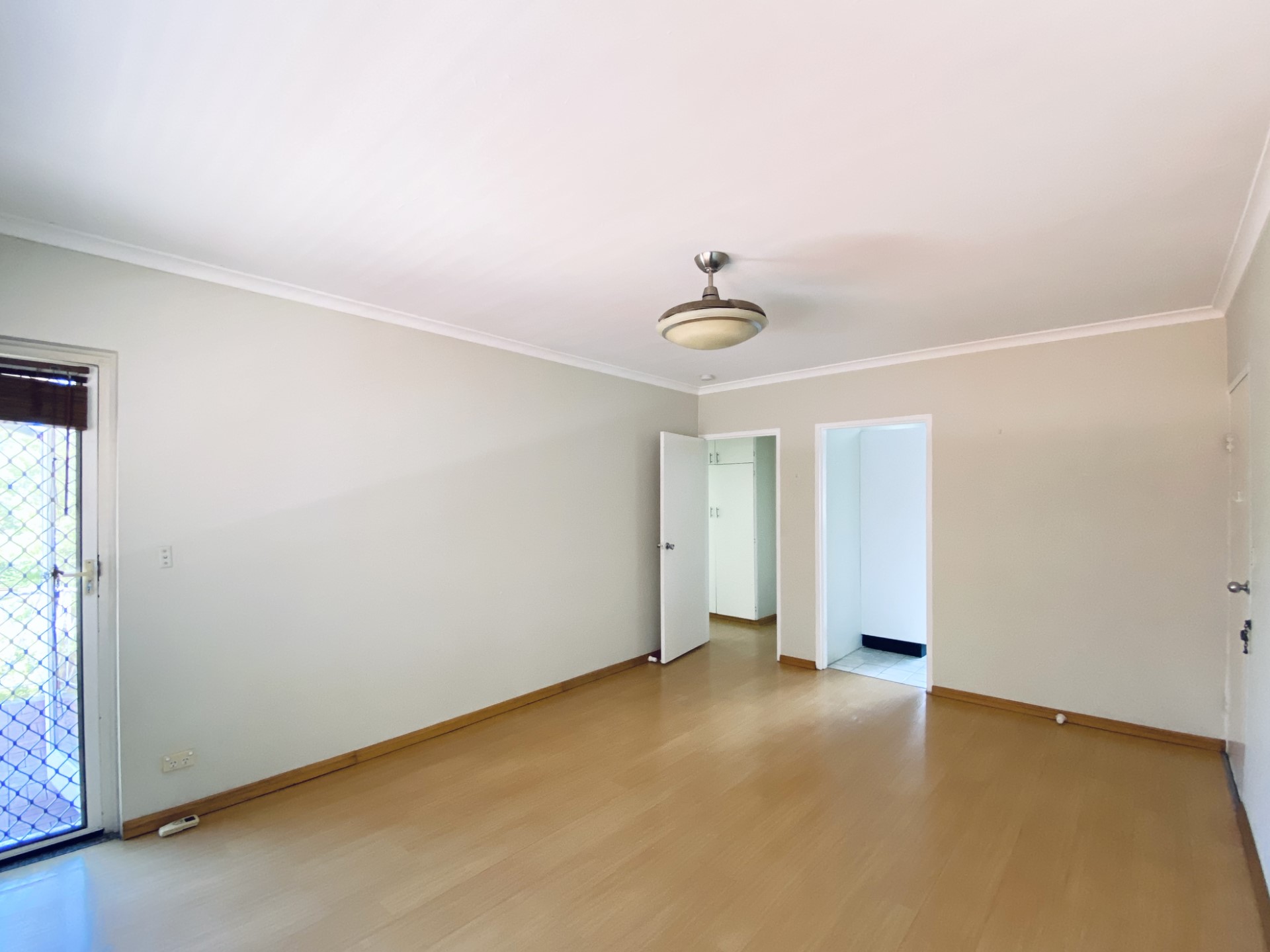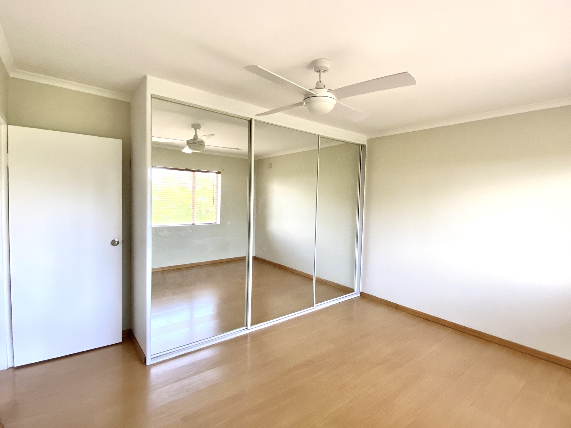 – Main bedroom with built in robe and ceiling fan.
