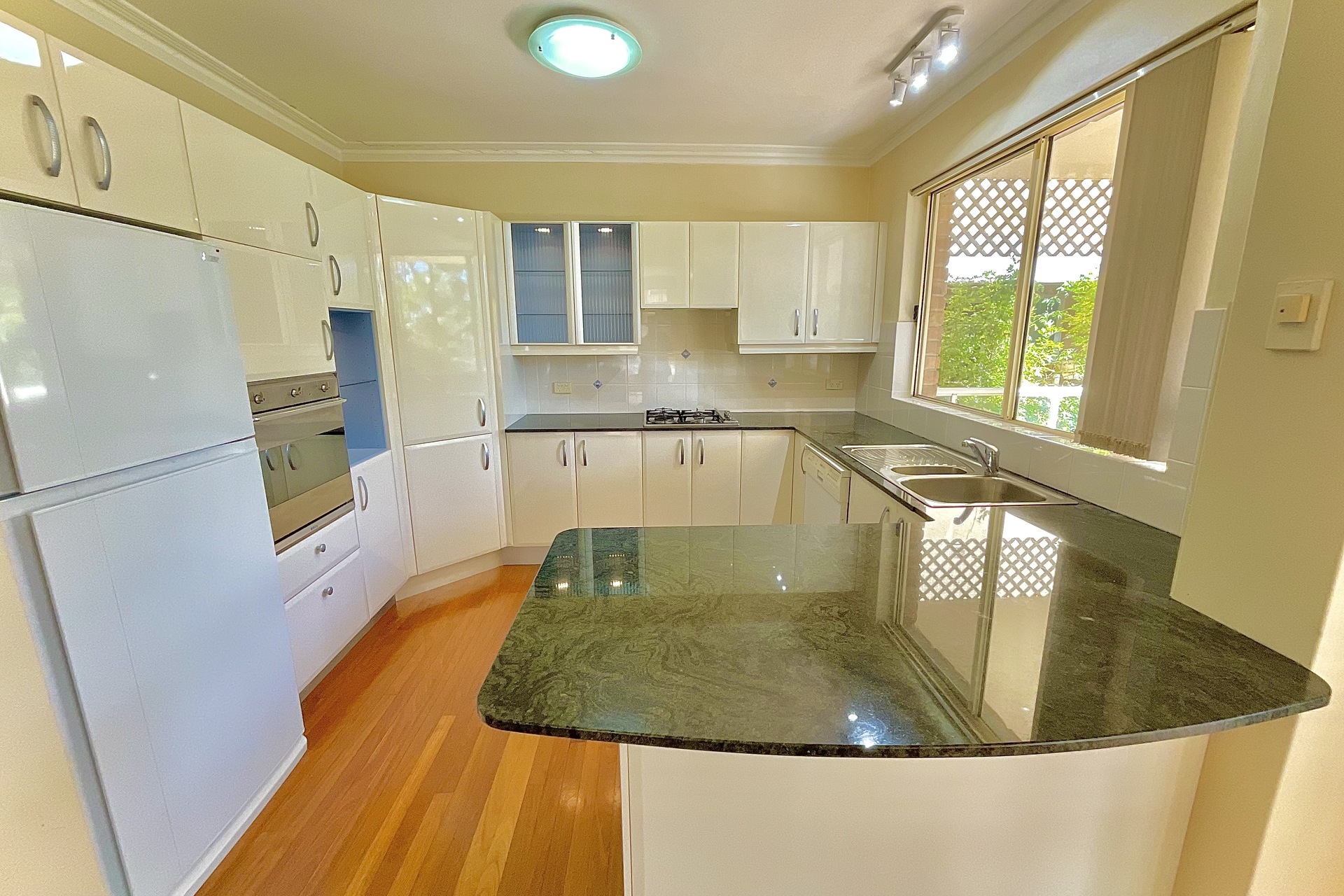 – Modern kitchen with gas cooking and Granite bench top
